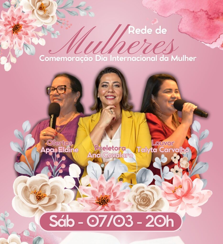 A Rede de Mulheres da nossa igreja convida você para uma noite especial de celebração, fé e comunhão em comemoração ao Dia Internacional da Mulher.